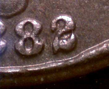 Just for fun, I've included a photo of an 1882 clear 2 to the right below. Look at the shape of the base of the 2, and match it up to the shape shown in the closeup.